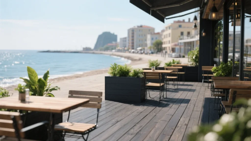 Противоскользящий эффект обеспечивает безопасность гостей, а современный дизайн настила подчёркивает стильное оформление заведения. Благодаря простоте ухода владельцы кафе экономят время и ресурсы: настил легко очищается даже после жаркого дня у моря. Железобетонное решение Iron Decking стало надежной основой для успешной работы заведения.